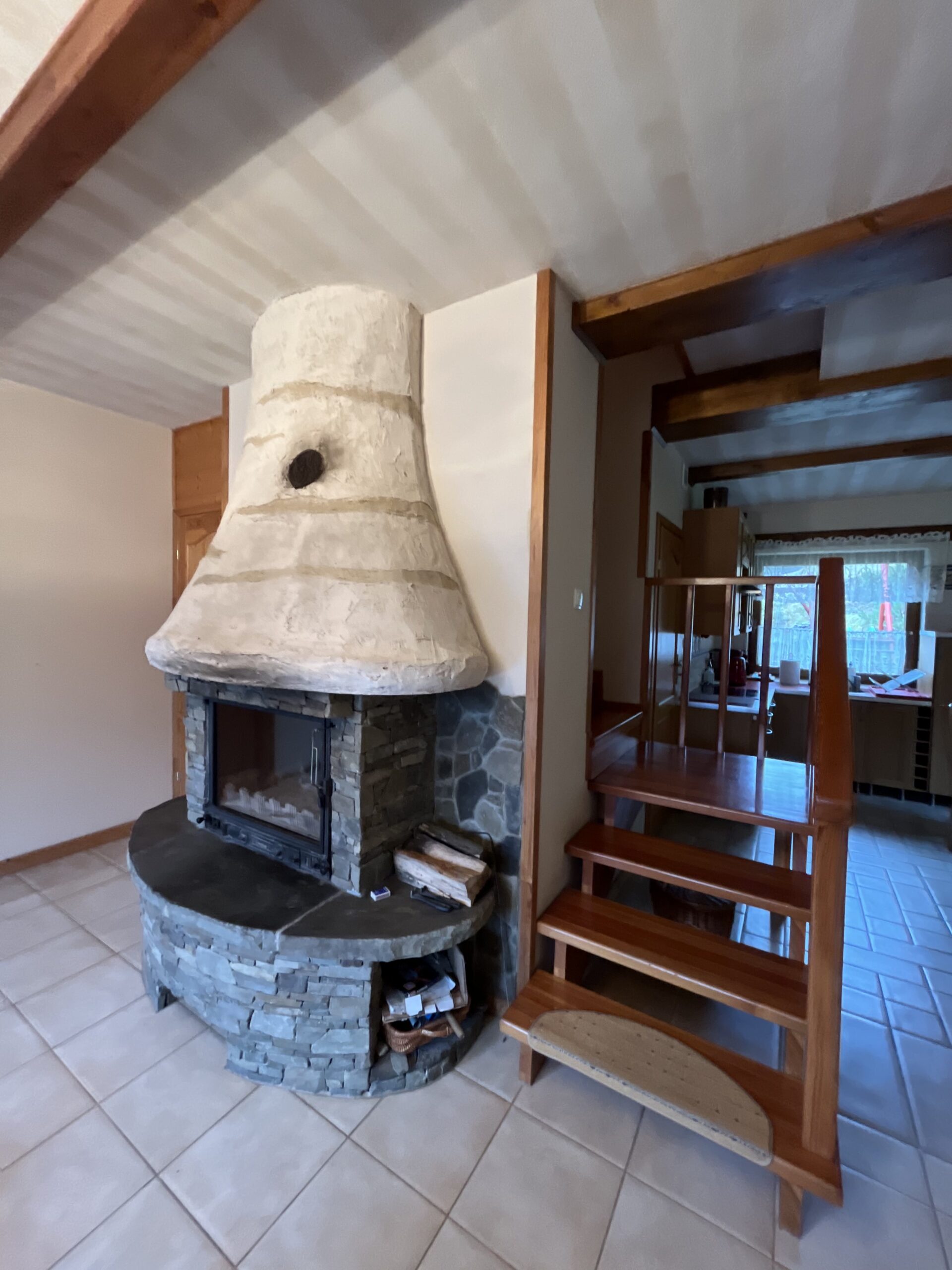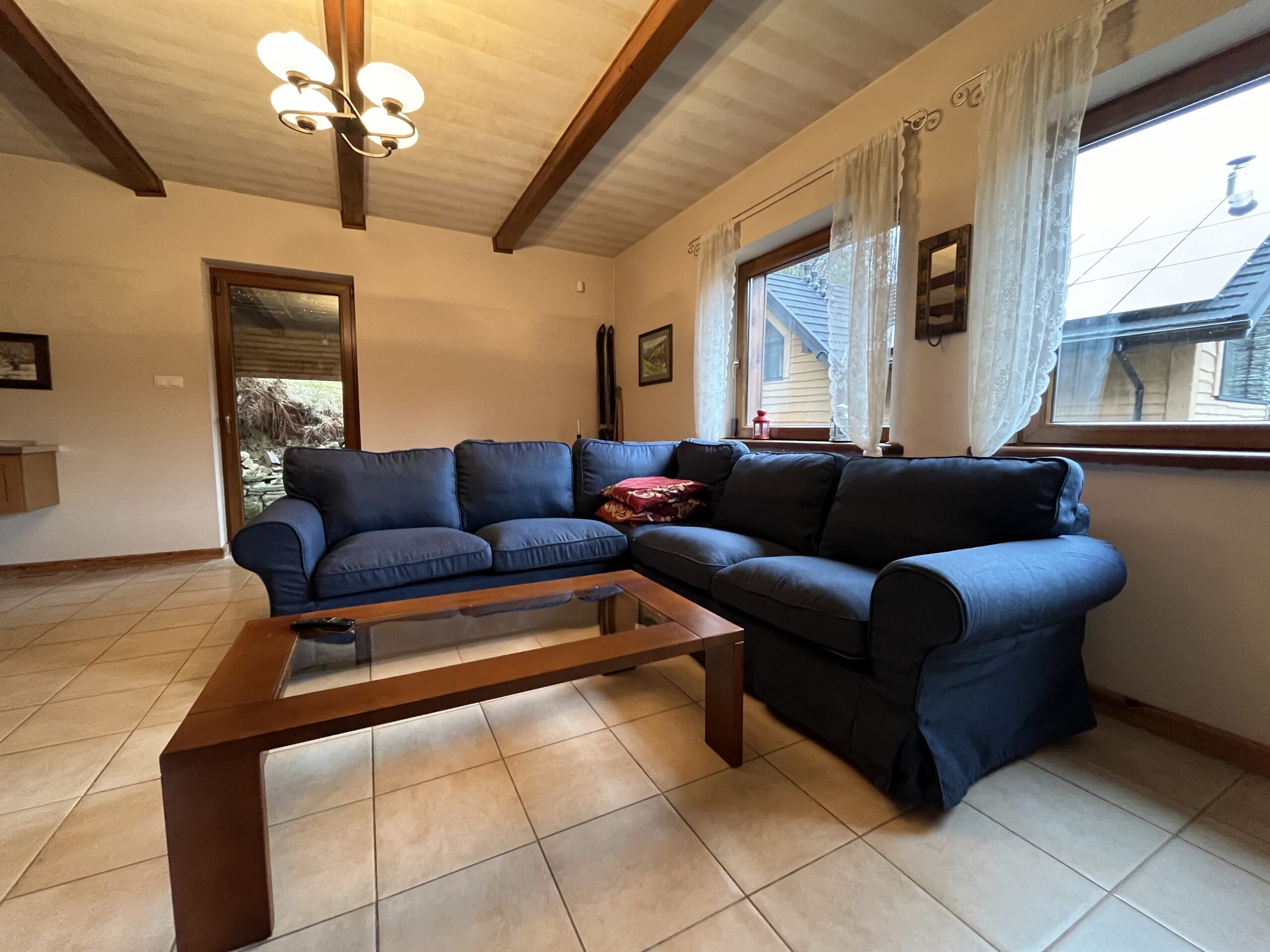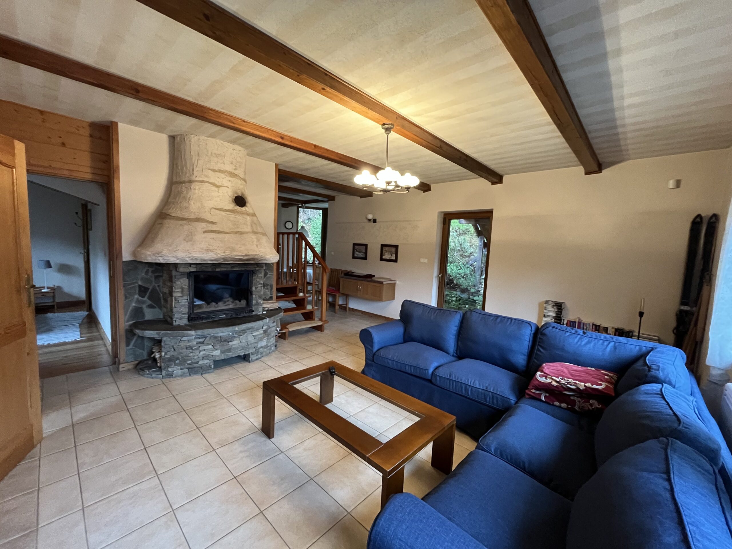 - Przestronny salon z kominkiem – idealny na wieczorne relaksacje