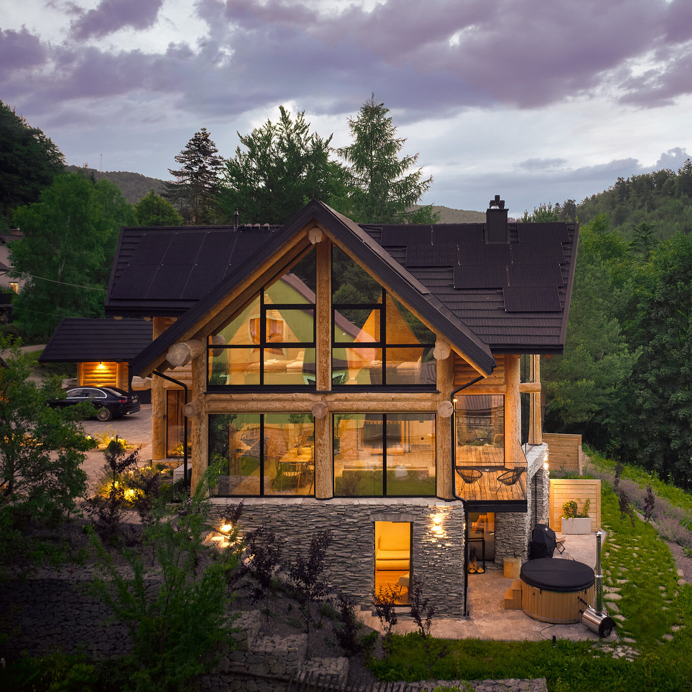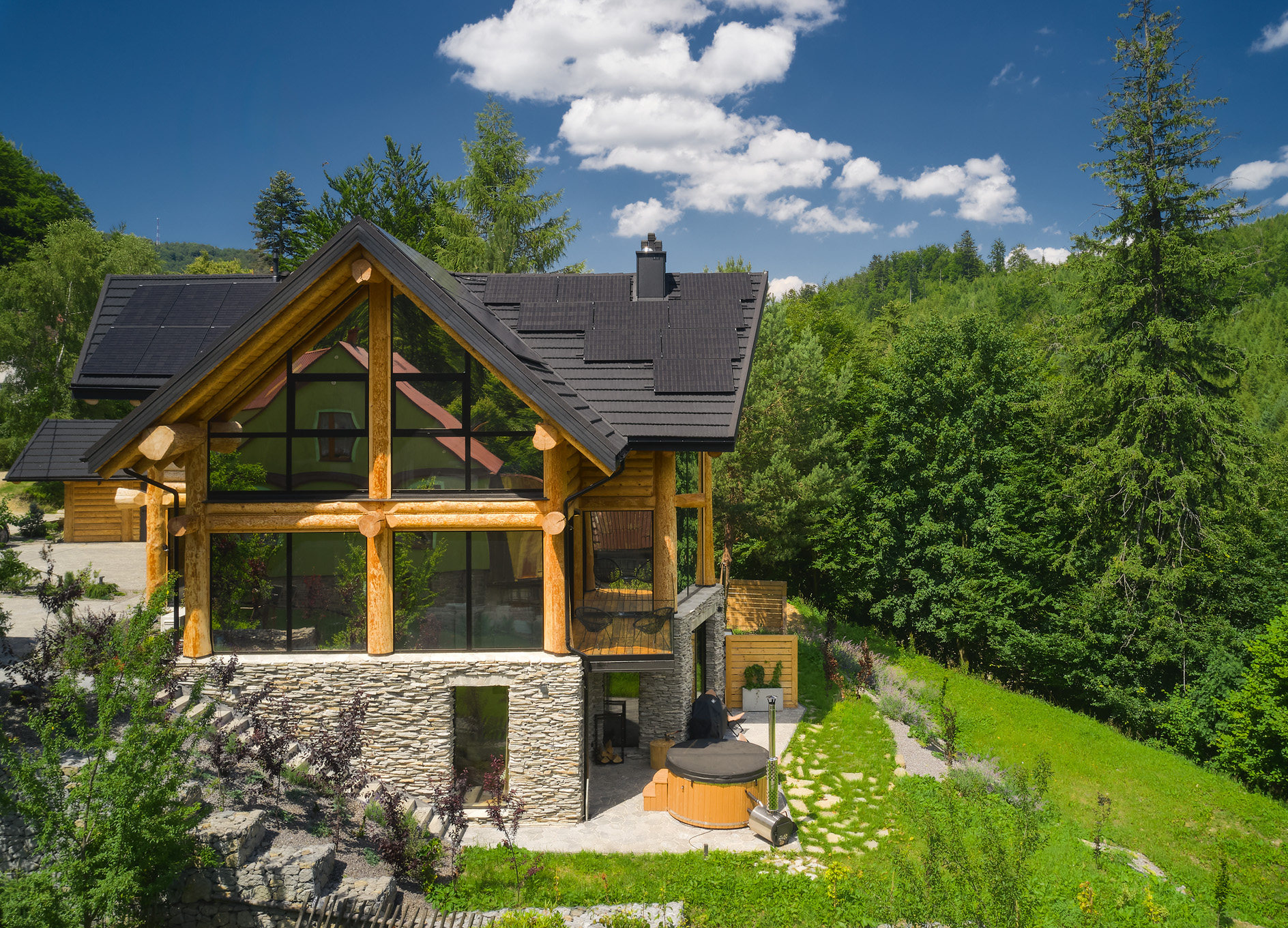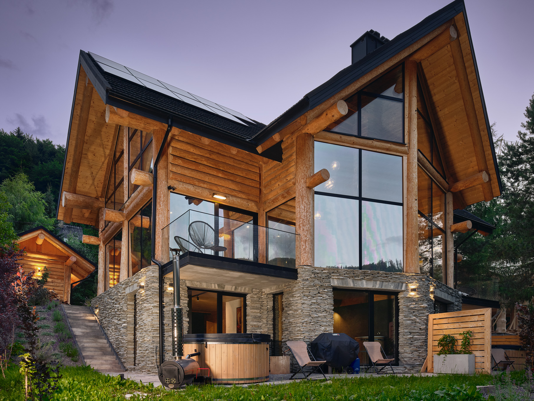 • Salon z kominkiem, na zewnątrz grill oraz sauna i balia ogrodowa do relaksu.