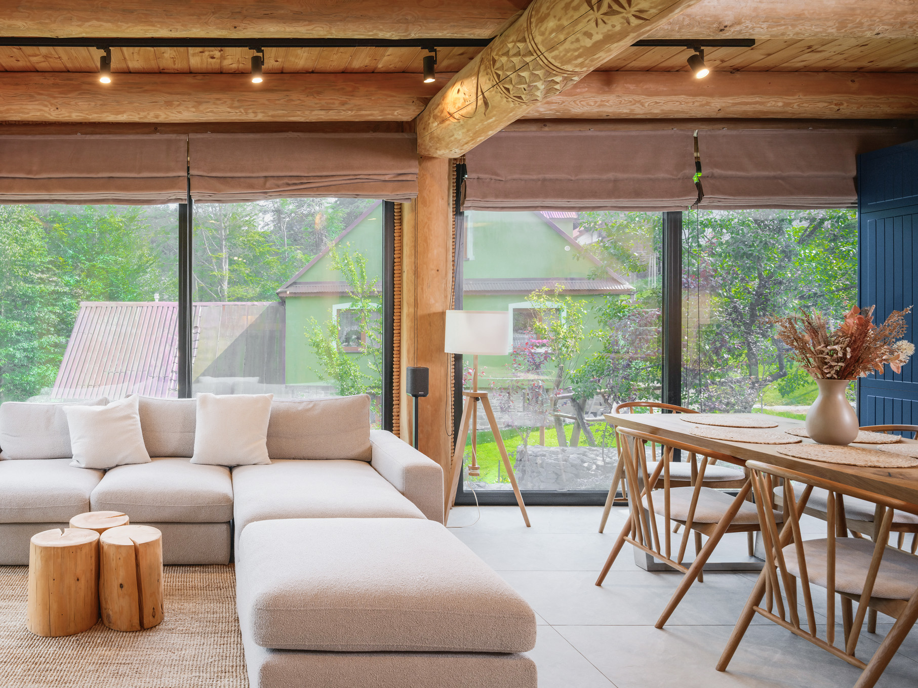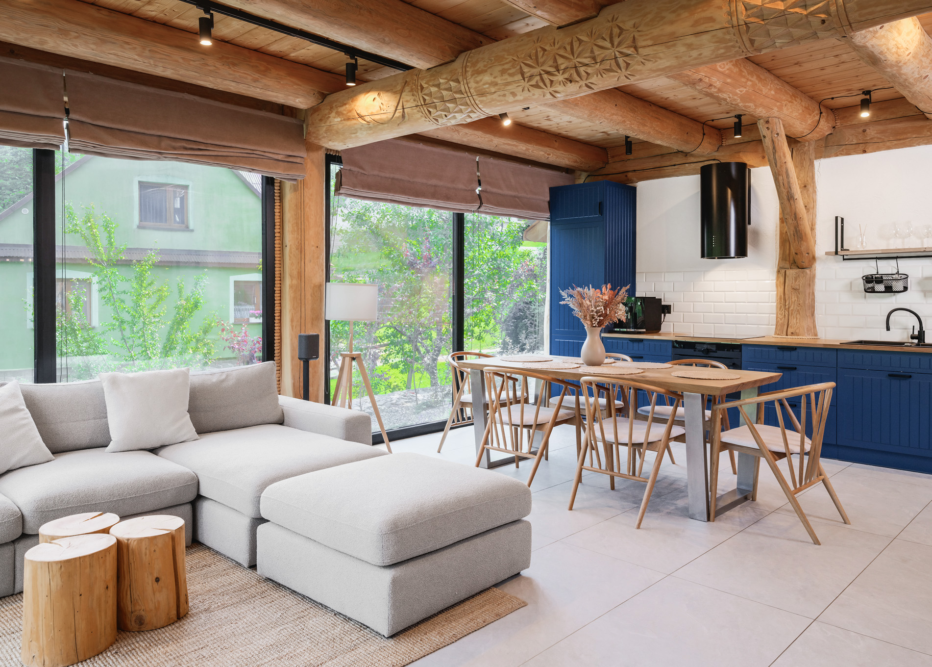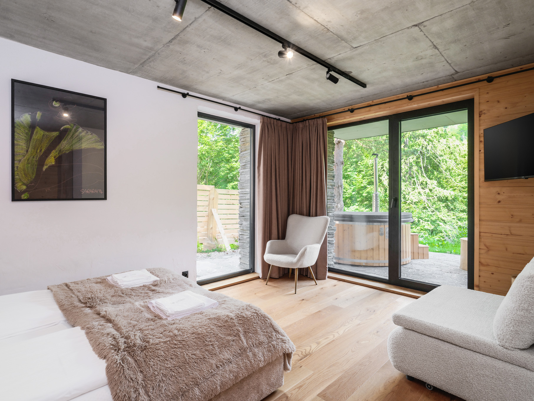 • Salon z kominkiem, na zewnątrz grill oraz sauna i balia ogrodowa do relaksu.