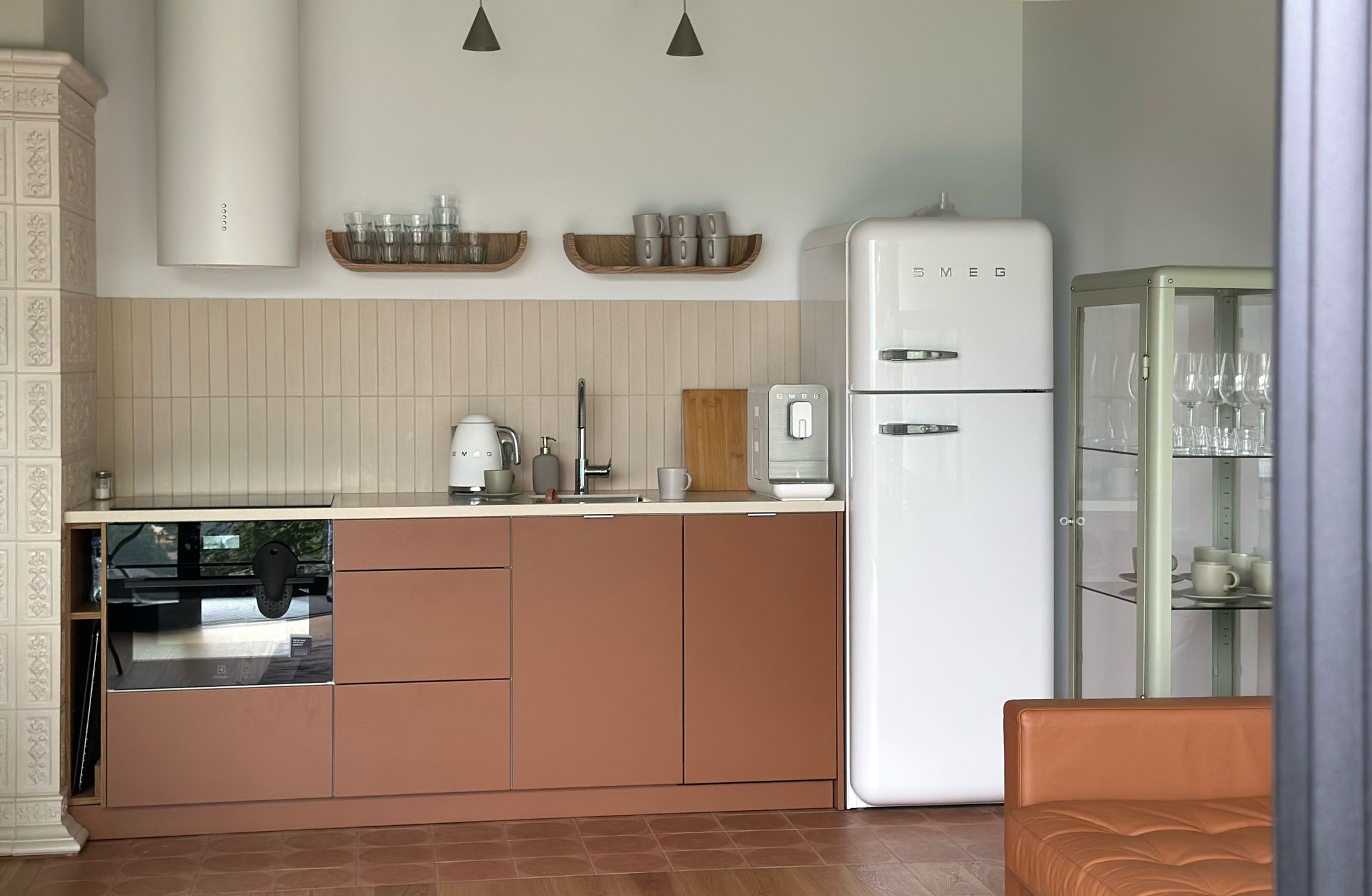 klimatyzowany salon z jadalnią i w pełni wyposażoną kuchnią,