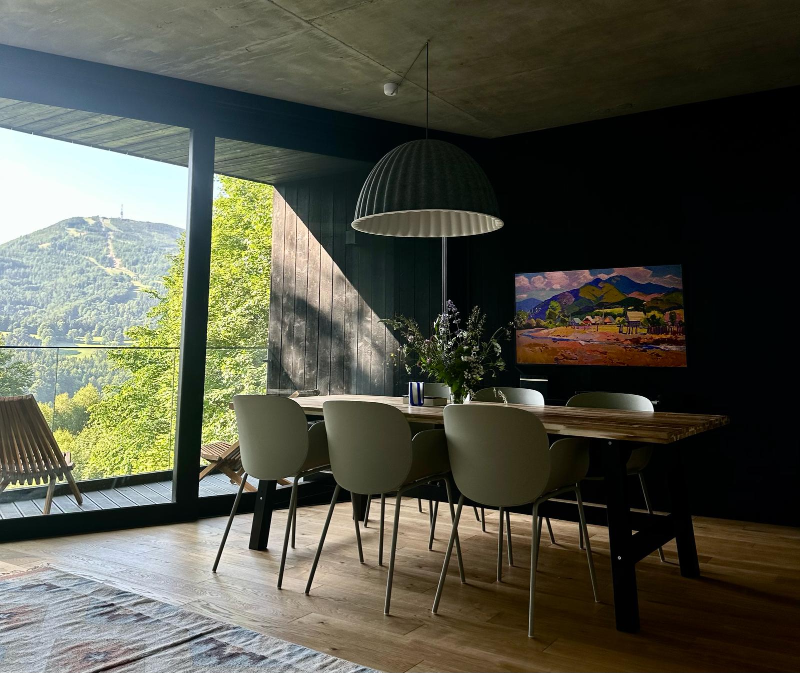 Szukasz miejsca z charakterem i widokiem, który zapiera dech? Strome Zbocze położone jest naprzeciwko zbocza Skrzycznego, tuż przy niebieskim szlaku prowadzącym na Klimczok. To przestrzeń, w której styl i natura tworzą harmonijną całość – a poranne spotkanie z sarnami lub jeleniami nie jest tu niczym niezwykłym. Wnętrze utrzymane w stylu wabi-sabi z góralskimi akcentami zachwyca prostotą i ciepłem. Największym atutem miejsca pozostaje niepowtarzalny widok o każdej porze dnia i roku.