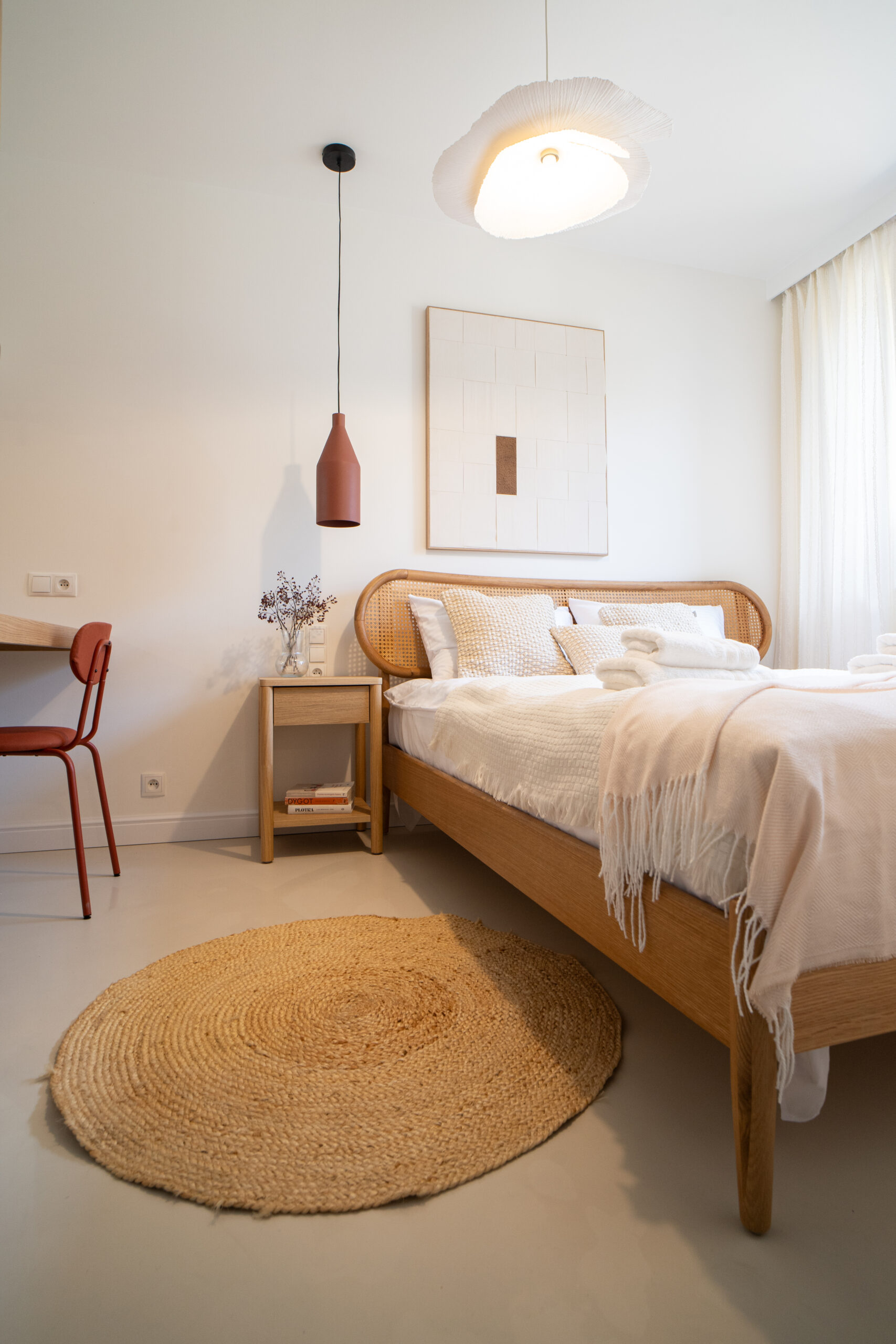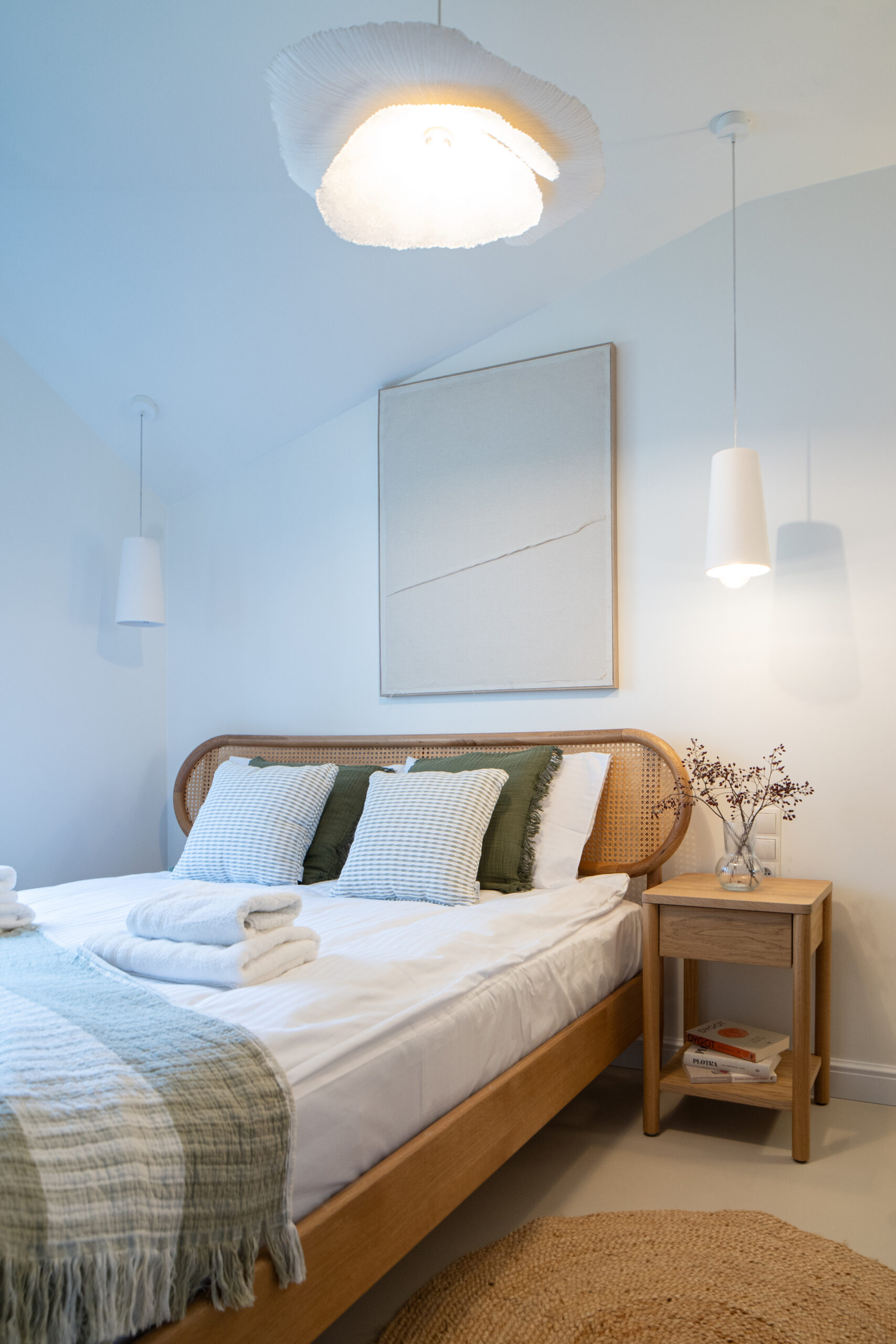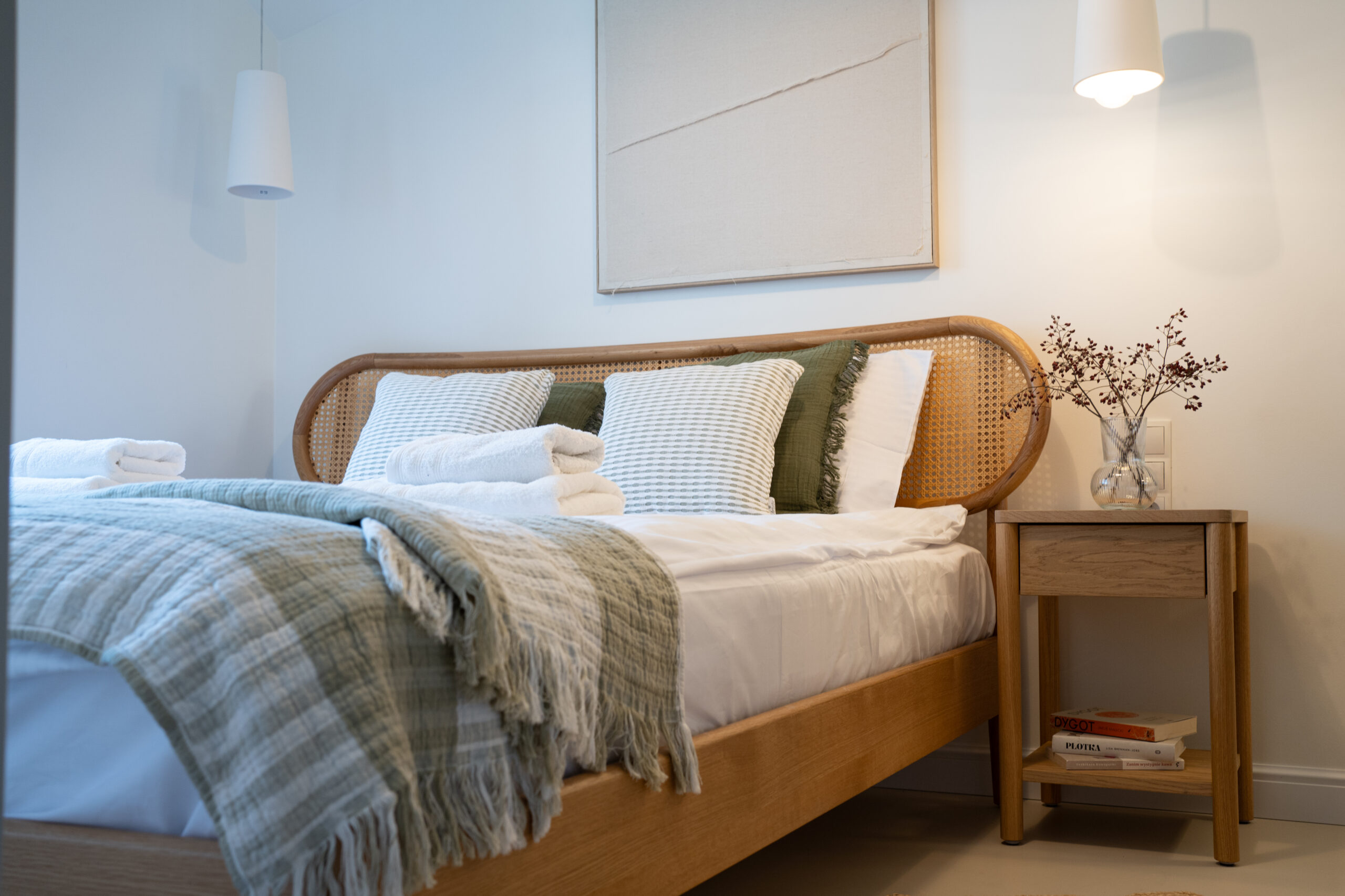 trzy przytulne sypialnie z dużymi łóżkami,