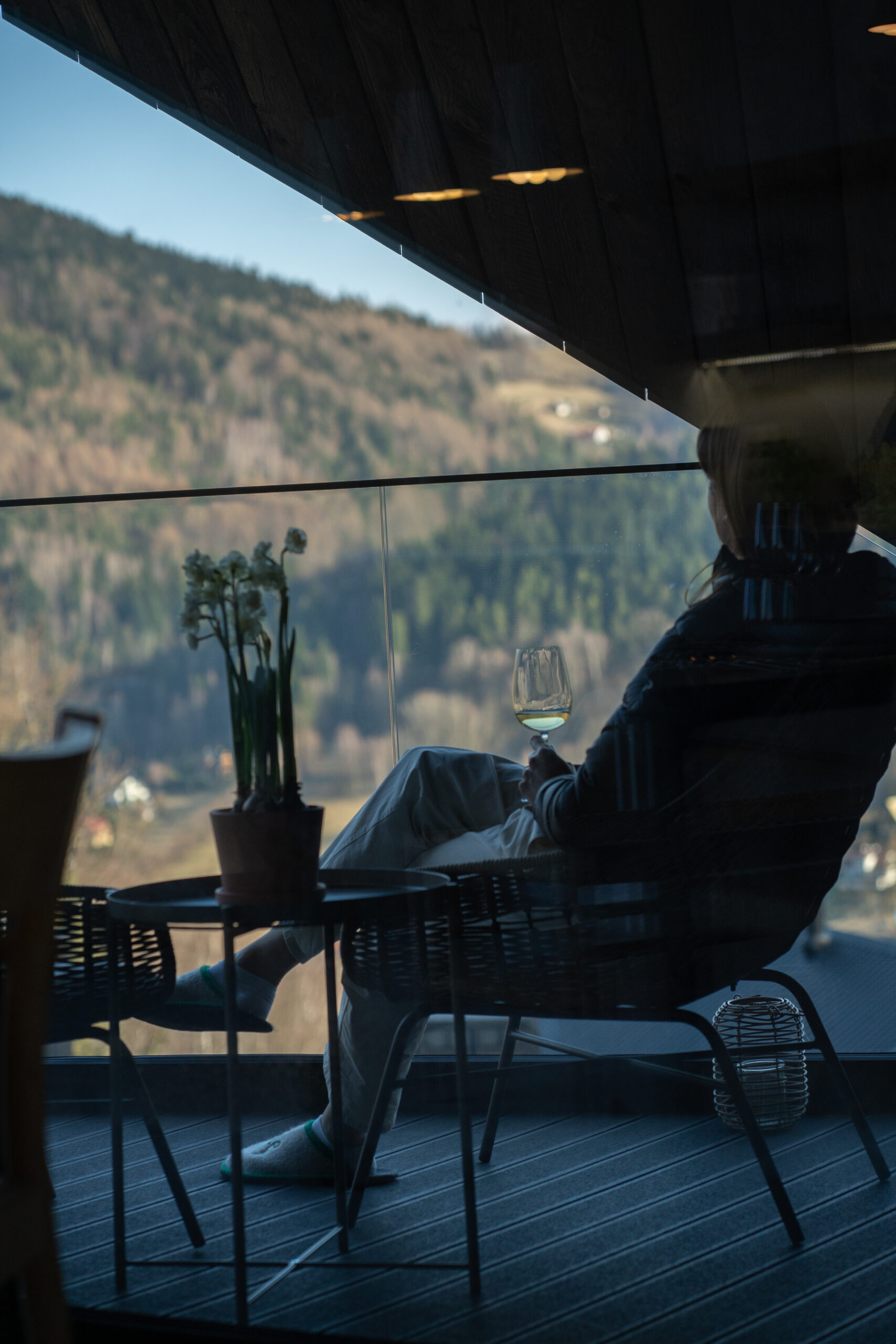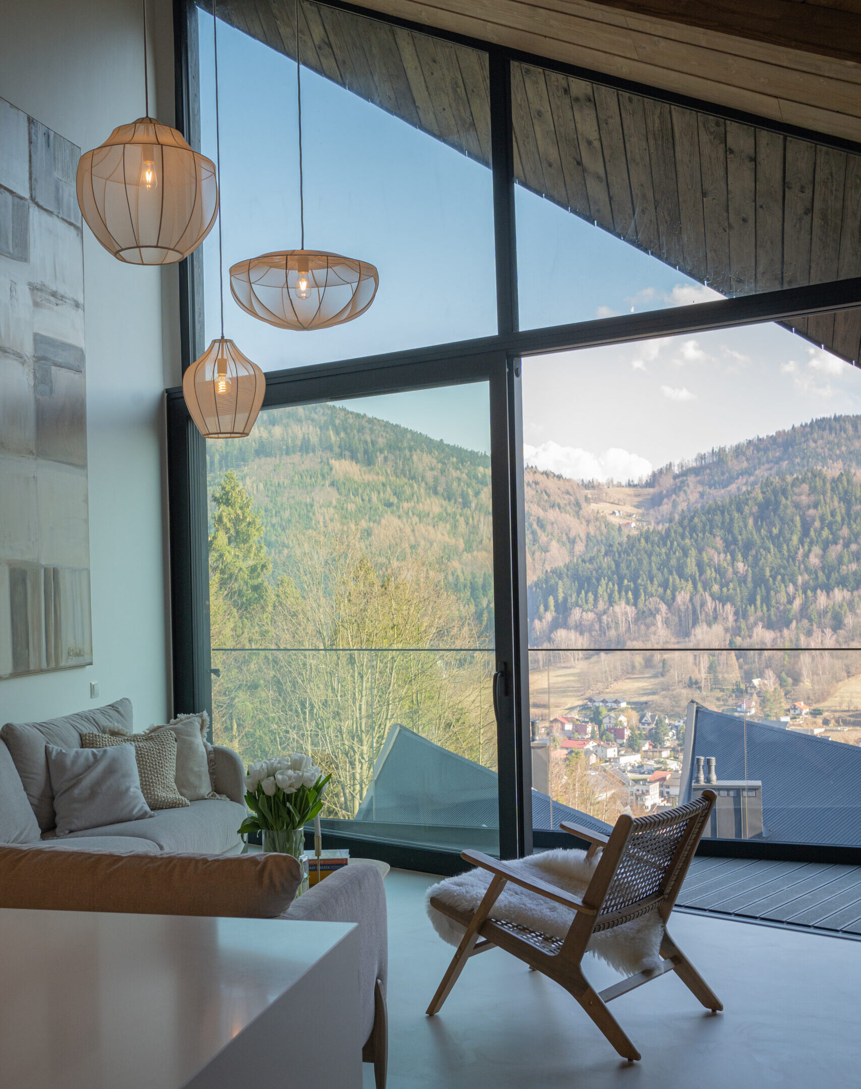 balkon z widokiem na Skrzyczne – idealny na poranną kawę lub wieczorny odpoczynek.
